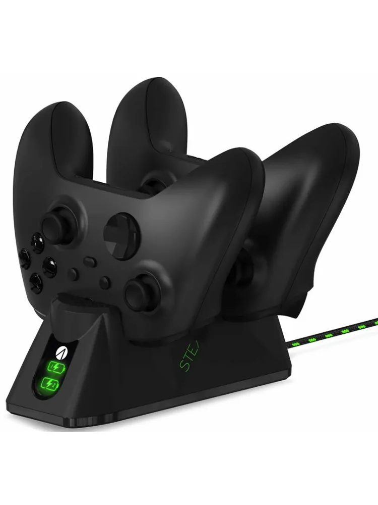 Док станция Xbox Series X +2 акк. Twin Charger Dock Stealth SX-C100X: Это аксессуар, разработанный специально для хранения и зарядки беспроводных контроллеров Xbox Series X и Xbox Series S. Станция оснащена двумя зарядными отсеками, что позволяет одновременно заряжать два контроллера. Это особенно удобно, если вы играете в игры с друзьями или семьей. Док станция выполнена из прочного пластика, что гарантирует долговечность и надежность в использовании. Зарядка осуществляется с помощью зарядного кабеля USB длиной 1 метр. Это позволяет заряжать контроллеры на расстоянии от док станции, что делает процесс зарядки более удобным и гибким. Выбирая данную док станцию, вы получаете надежное и удобное решение для хранения и зарядки ваших контроллеров Xbox Series X и Xbox Series S. В комплект входят 2 мощных перезаряжаемых аккумуляторных батареи для XBOX Series X и Series S. Питание от USB-C с помощью съемного плетеного кабеля для зарядки длиной 1 м. Стильная световая полоса на 360 градусов с эффектом пульсации. Светодиодный индикатор зарядки наглядно показывает уровень заряда. Матовый дизайн с зеленой и черной отделкой