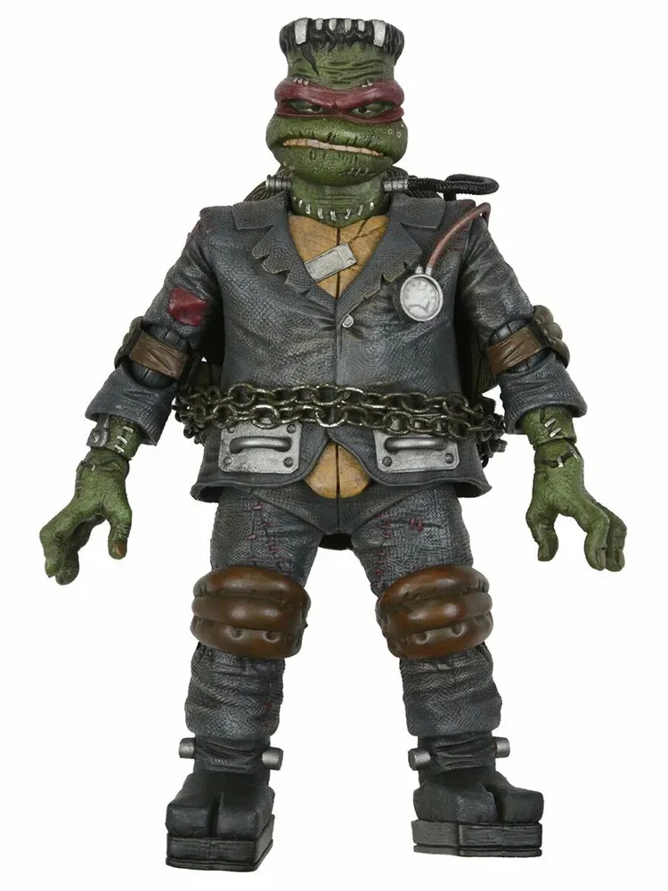Фигурка подвижная, принимает разные позы. Фигурка Teenage Mutant Ninja Turtles Monsters (Черепашки Ниндзя) (Raphael as Frankenstein): Вы готовы к такому необычному кроссоверу? Если да, тогда встречаем самое необычный микс - классические Монстры встречаются с Черепашками-Ниндзя, оригинально беря от каждого из образов самое лучшее, так самый темпераментный из четверки в панцирях, Рафаэль соединился с трагично-брутальным Монстром Франкенштейна! Подвижная фигурка имеет неповторимый детализированный облик, скульпт головы с характерным выражением лица, а также сменные ладони и стилизованные под оживляющий прибор саи, с лезвиями в форме молний. Высококачественный материал и внимание к деталям делают эту фигурку не просто игрушкой, а настоящим произведением искусства, которое будет радовать глаз и сердце любого фаната Черепашек-ниндзя. Высота: 16 см Материал: ПВХ/Винил Комплектация: коробка;фигурка;аксессуары (изображены на фотографиях).