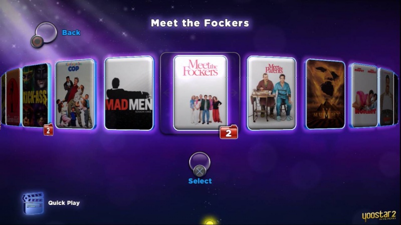 В Yoostar 2 представлено 50 эпизодов, 10 голливудских площадок и 20 видов декораций. А еще сотни вы сможете приобрести сетевом магазине. В библиотеке Yoostar 2 вы найдете современные хиты, такие как «Мальчишник в Вегасе», «Солдаты неудачи», «Знакомство с Факерами», «300» и «Пипец»; классические киноблокбастеры, в числе которых «Крестный отец» и «Рокки»; бессмертные шедевры «Касабланка» и «Волшебник страны Оз». Кроме того, в коллекцию вошли популярные телесериалы «Звездный путь», «Безумцы» и CSI. Вас ждут более 1 200 актеров, среди которых Бен Стиллер, Эдди Мерфи, Джерард Батлер, Кэмерон Диас, Арнольд Шварценеггер и многие другие.